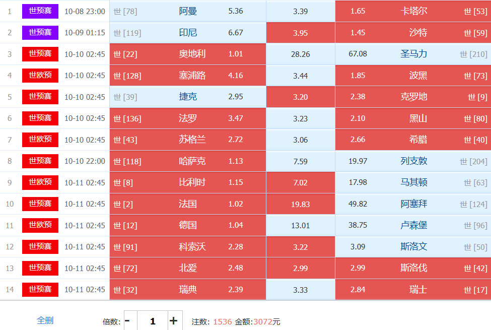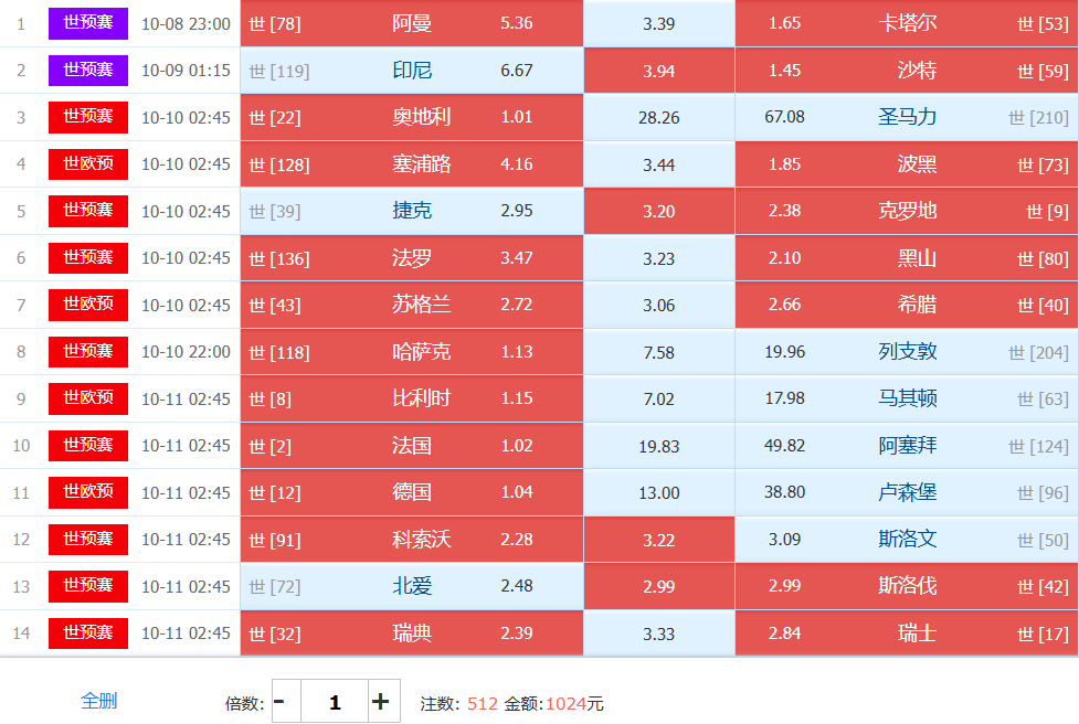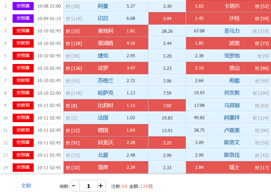 1.奥地利vs圣马力诺:这样的一场比赛找不到不做胆的理由,主胜1.00甚至存在着奥地利赢球都走的可能,今日任九可变任八,胜负彩天然性的少一场。