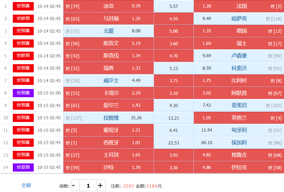 2304元14场容错单单如下:4组方案为一个整体,切勿自行拆开!最多可中4注一等奖!