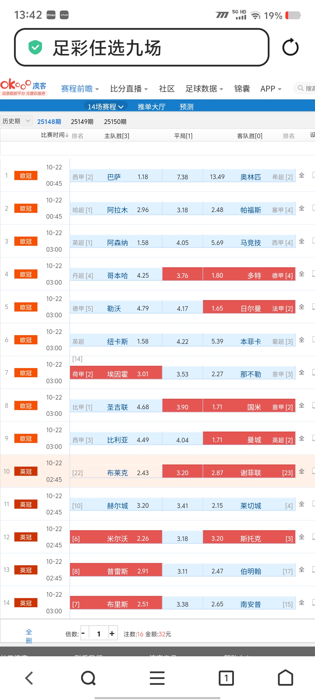 3.占据主场优势状态尚佳的埃因霍温主胜值得高看一线。同状态与实力尚佳的曼城客胜优先做本期两个优选胆材。