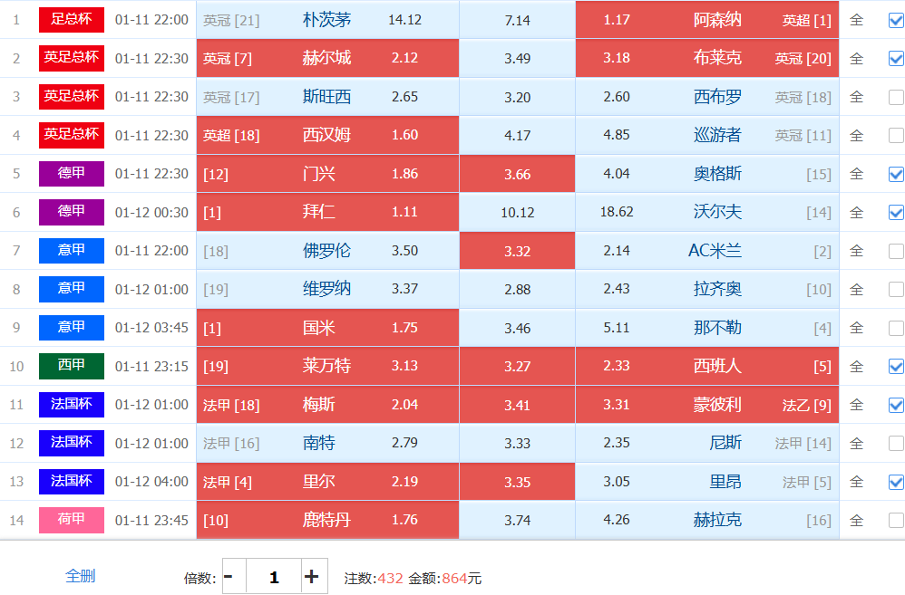 20736元14场初始单如下:今日14场值得加大投入