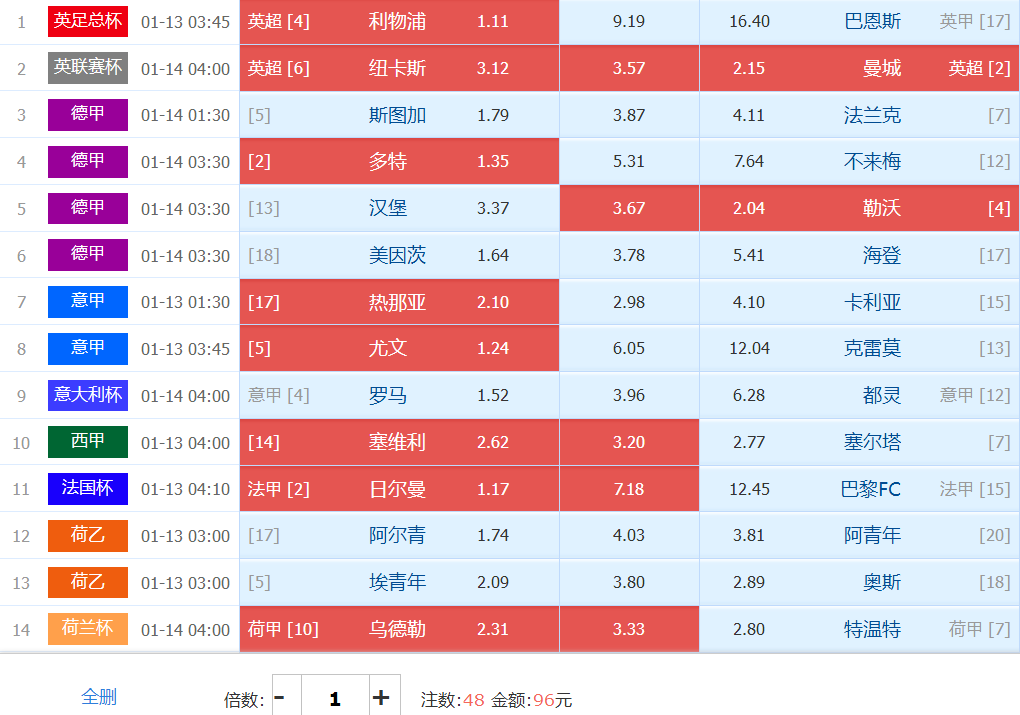 任九96实战单: