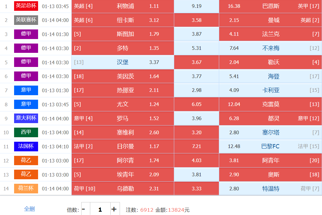 胜负彩梦想单: