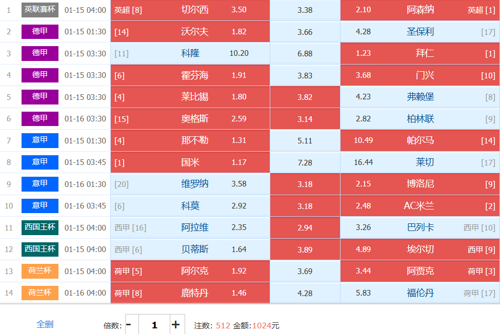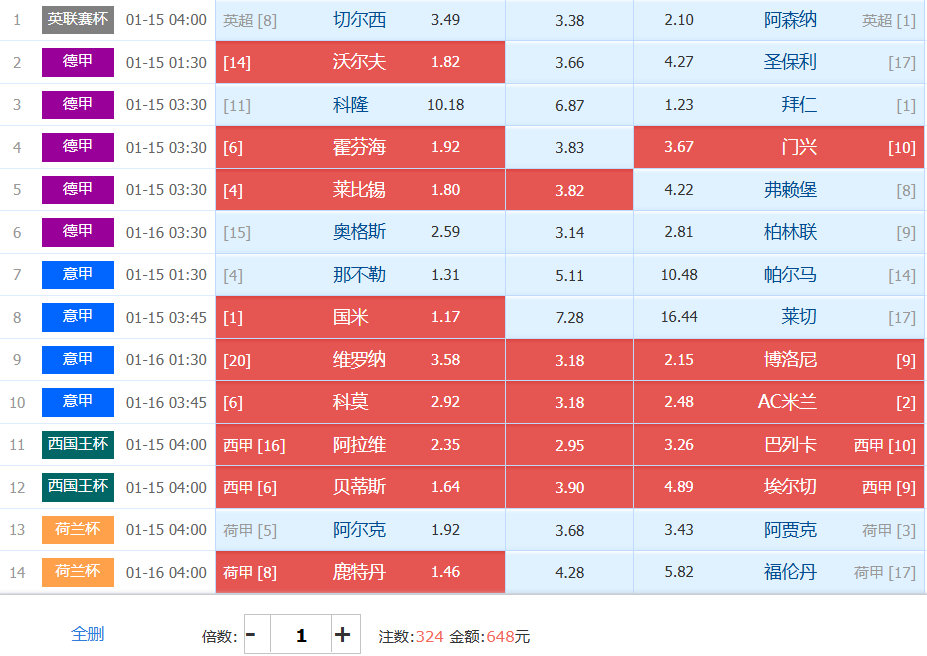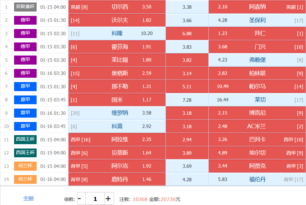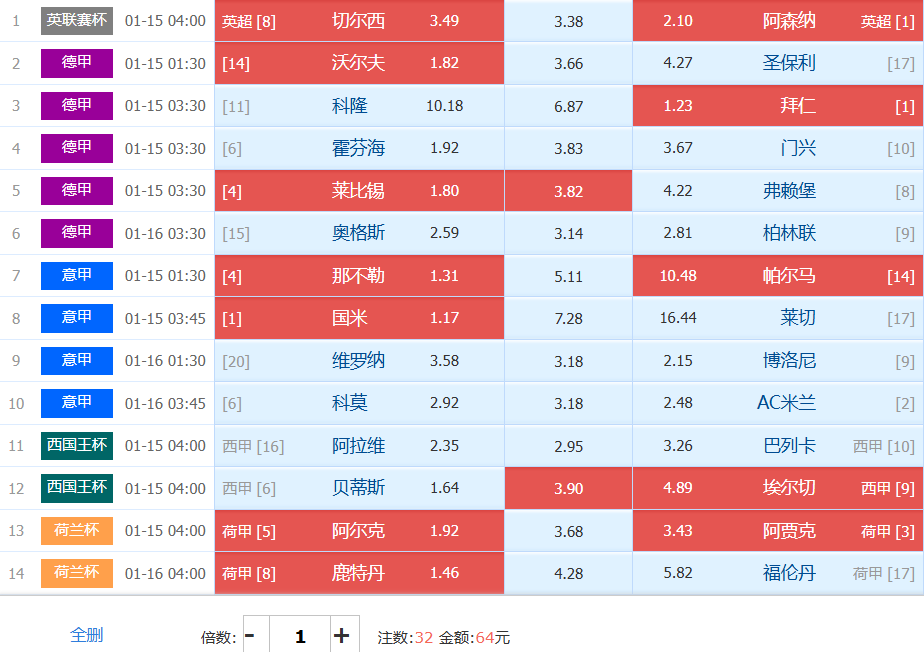 胜负彩梦想单: