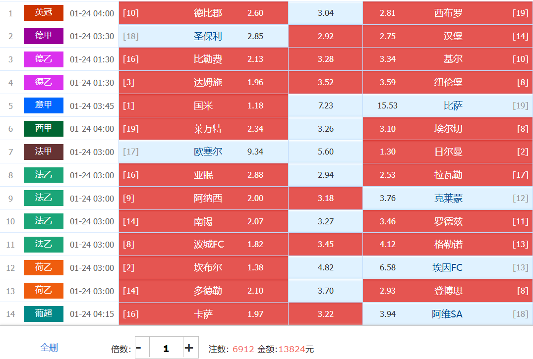 13824元14场初始单如下:今日14场正常投入即可,小搏大冲击500w!