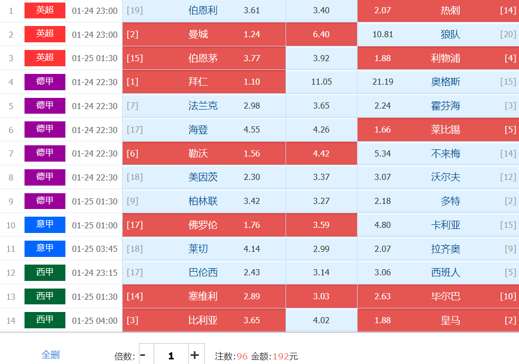 招牌冷门点:霍芬海姆!曼城走31,利物浦和皇马全部走30