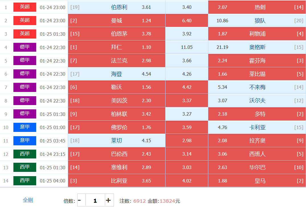 胜负彩梦想单:
