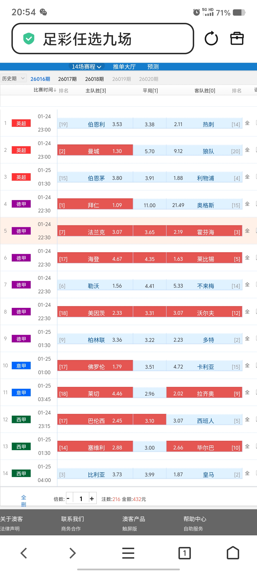 占据主场优势与状态的拜仁与曼城主胜。与状态回升的佛罗伦萨主胜优先做本期的三个精选胆材。