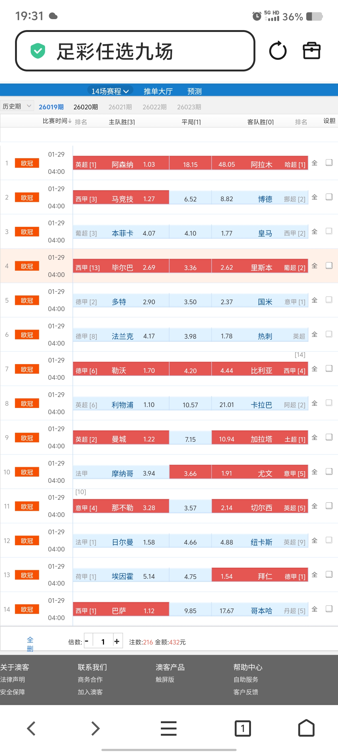 占据主场优势与状态的马赛与巴塞主胜。与状态稳定的拜仁慕尼黑客胜优先做本期的三个精选胆材。