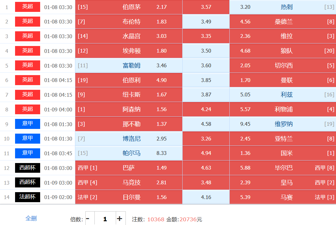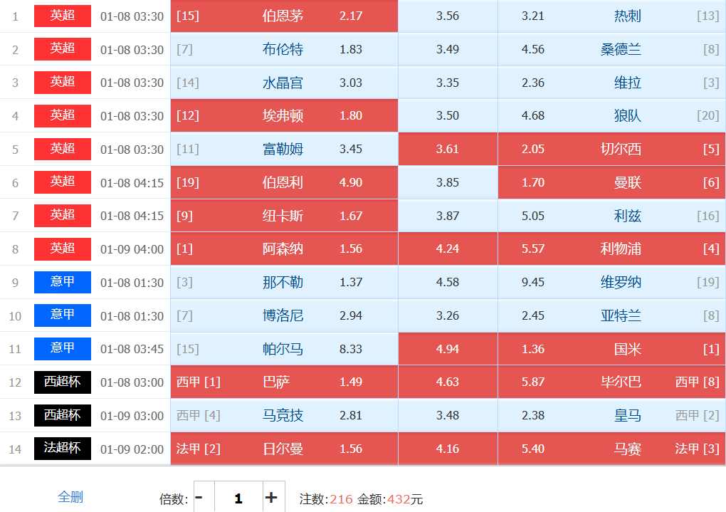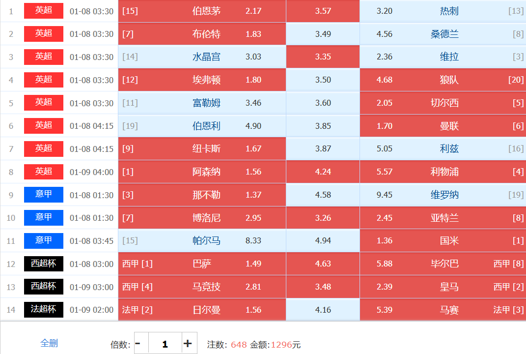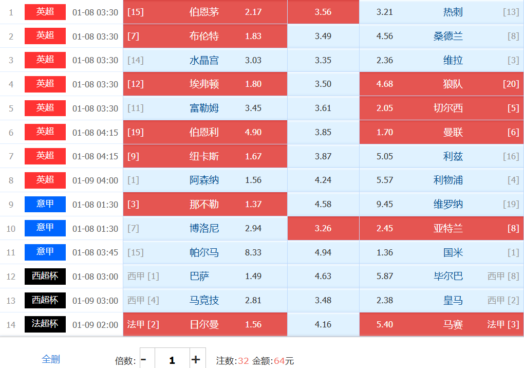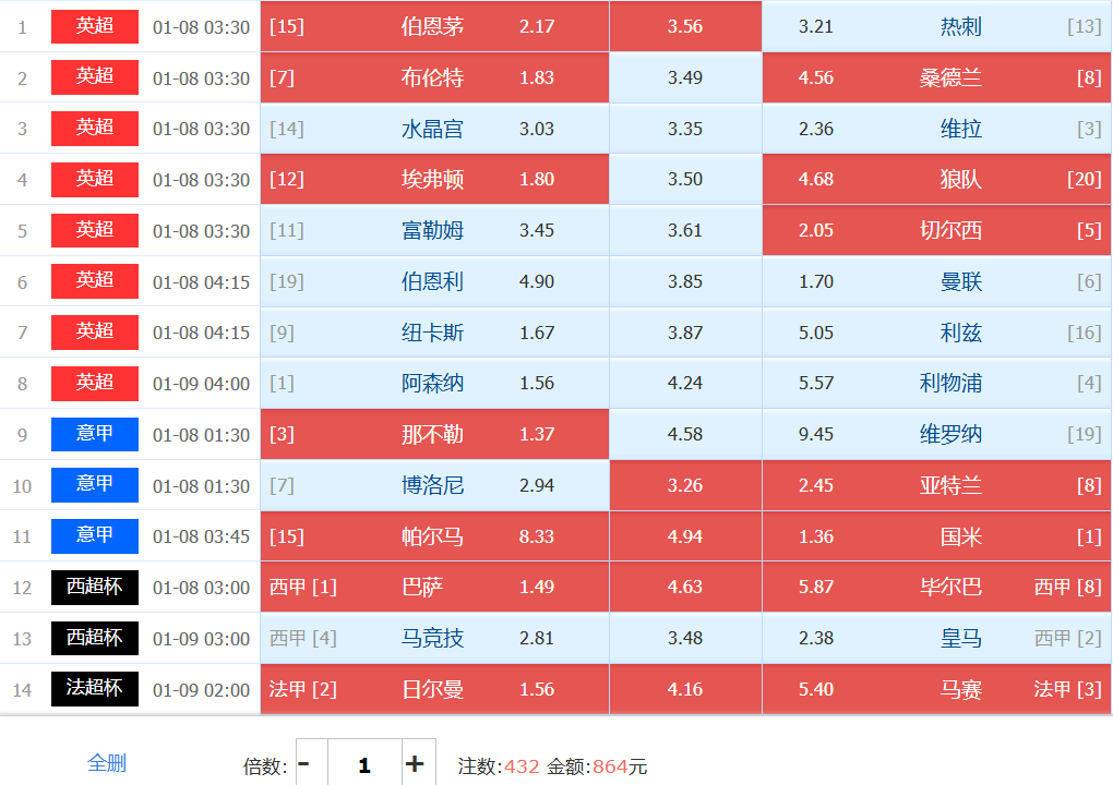 本期胆材:伯恩茅斯和切尔西互为1组搏胆