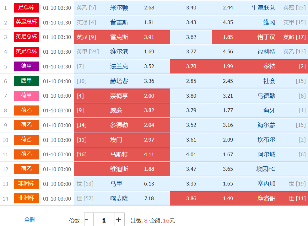 解析:今日4场进球——1数据、0.75数据各1场,0.25数据2场,和上期一样难度很大,小单无亦于分母的角色,没有必要浪费资金!