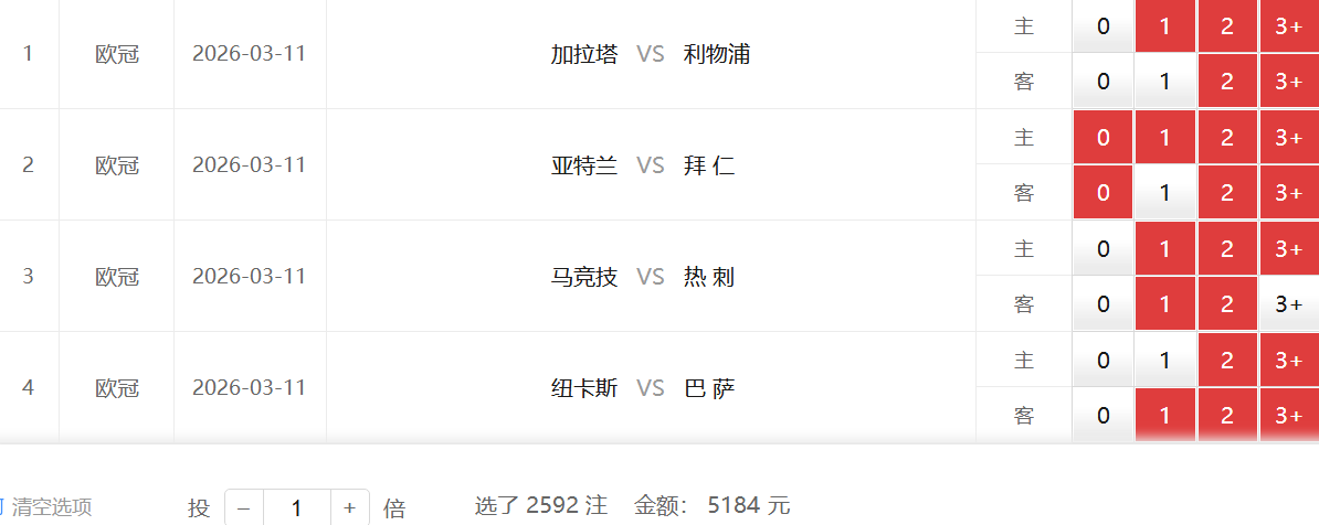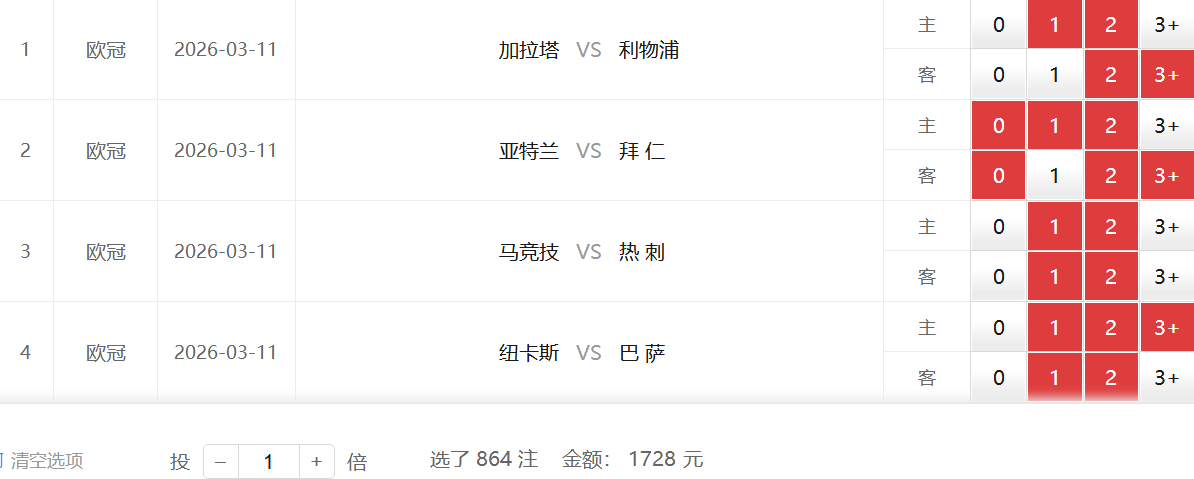 核心场次:加拉塔萨雷vs利物浦——1:2/1:3