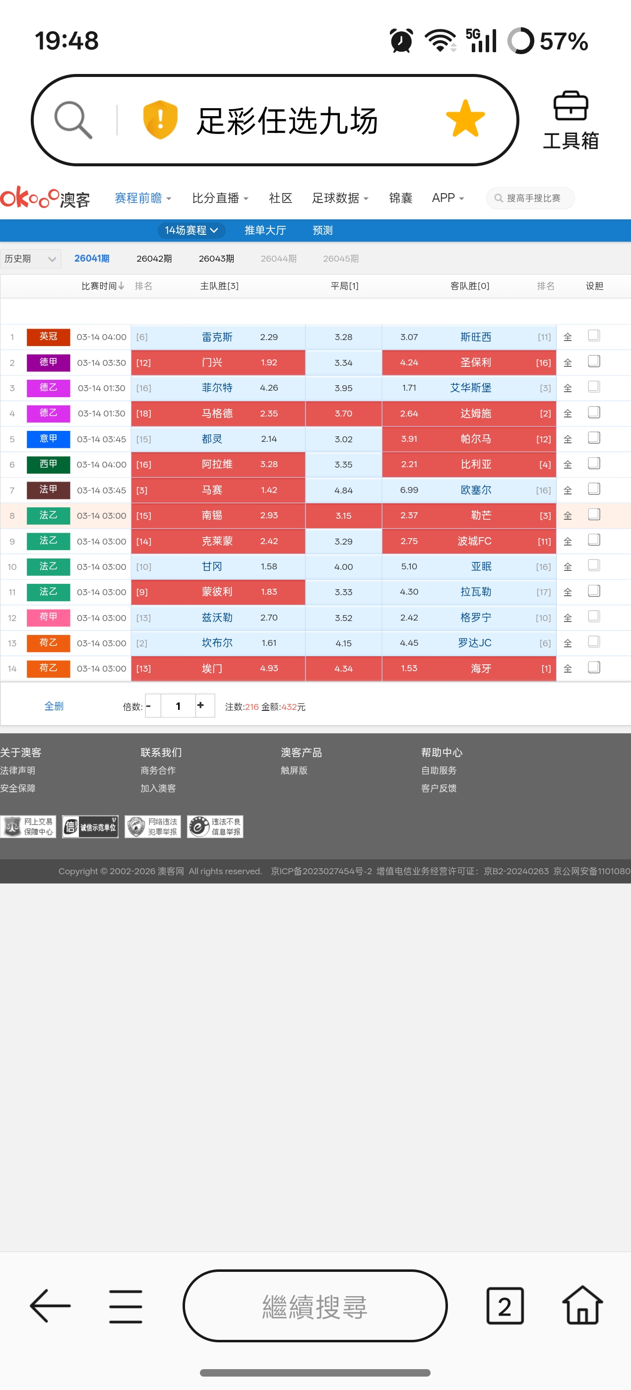 占据主场优势与状态尚佳的馬賽與蒙彼利埃主胜。状态稳定的一哥海牙客胜优先做本期的三个精选胆材。